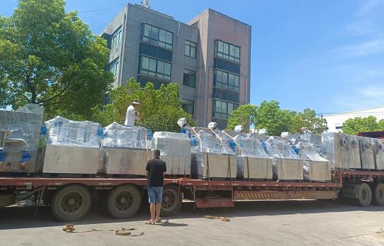 8.13日發貨21套隔油提升設備和18套污水提升設備,設備足足裝滿兩輛大貨車